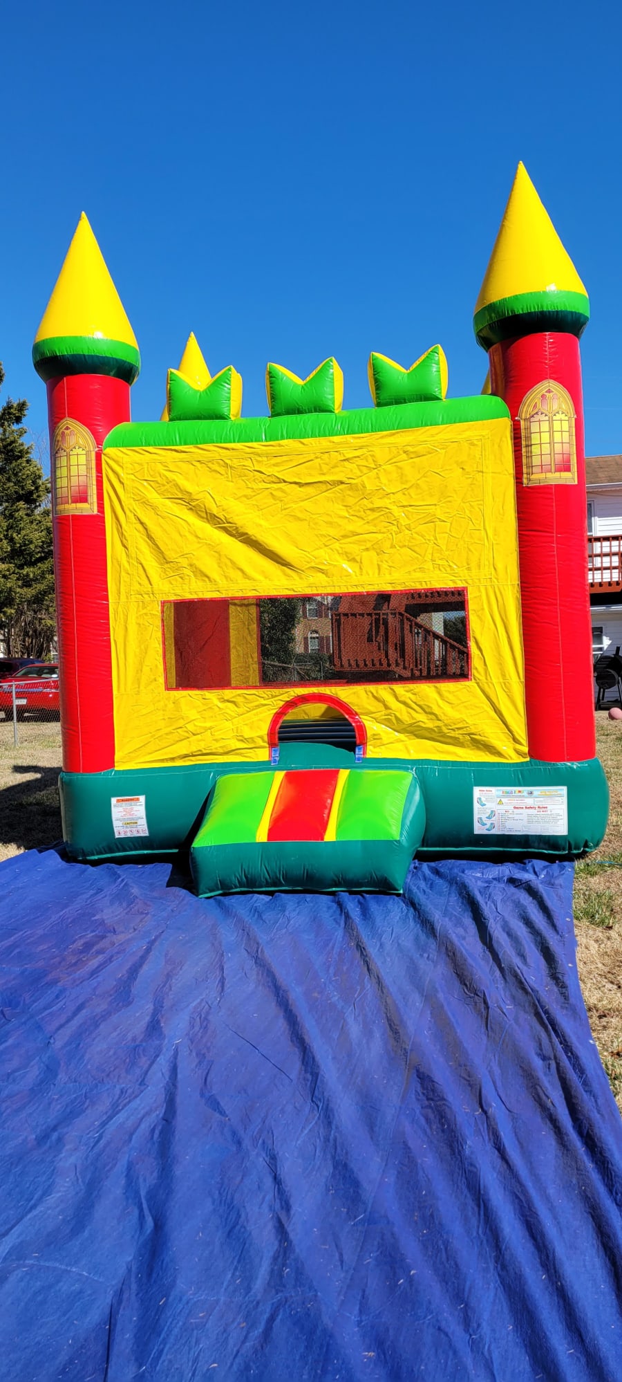 The Magic Castle Bounce House is a great option that can be enjoyed by everyone; children can bounce, jump, skip and run around in the classic Magic Castle Bounce House. This 13' L x 13' W Magic Castle Bounce House features a Basketball Hoop inside and can comfortably accommodate six participants at 160lbs each.