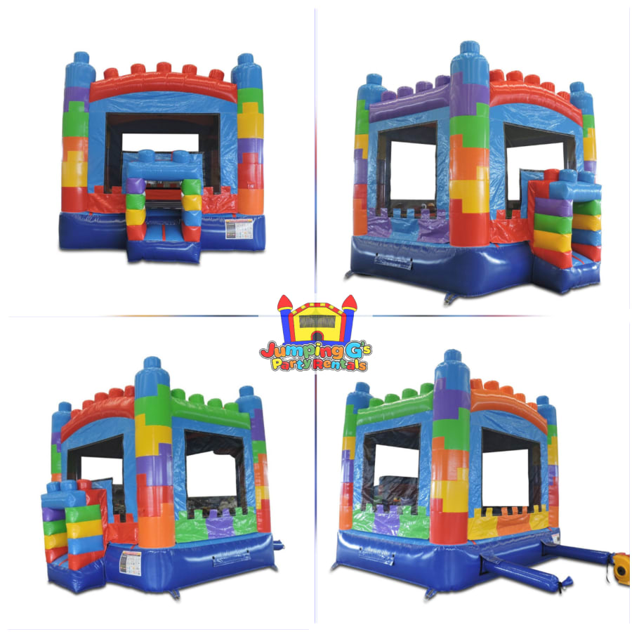 The Fort Blocks Bounce House is a great option that can be enjoyed by everyone; children can bounce, jump, skip and run around in the Colorful Fort Blocks Bounce House. This 13' L x 13' W Fort Blocks Bounce House features a Basketball Hoop inside and can comfortably accommodate six participants at 160lbs each.