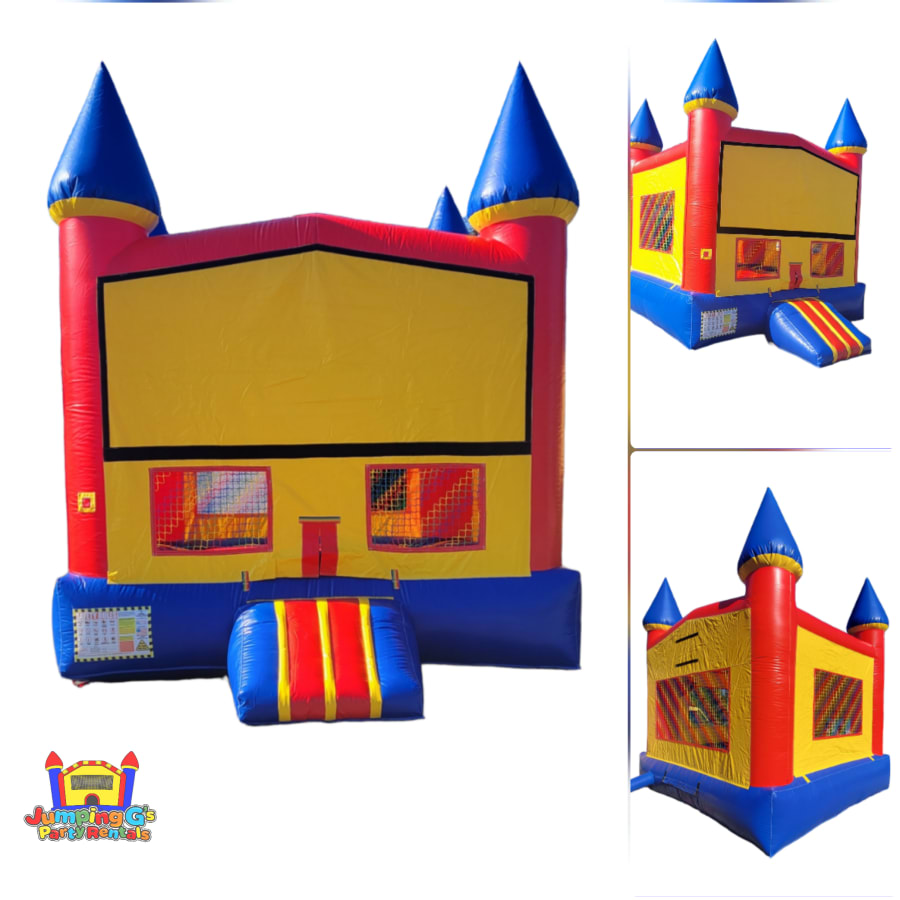 The Primary Castle Bounce House is a great option that can be enjoyed by everyone; children can bounce, jump, skip and run around in the classic Primary Castle Bounce House. This 13' L x 13' W Primary Castle Bounce House features a Basketball Hoop inside and can comfortably accommodate six participants at 160lbs each.